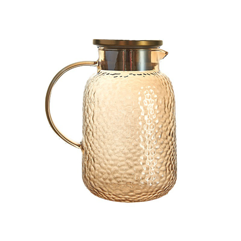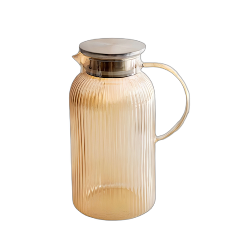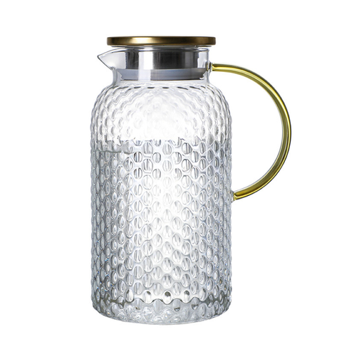 Bouilloire de boisson de jus de haute qualité Pichet d'eau froide avec capuchon en or Théière en verre borosilicaté à haute teneur en borosilicate avec motif vertical