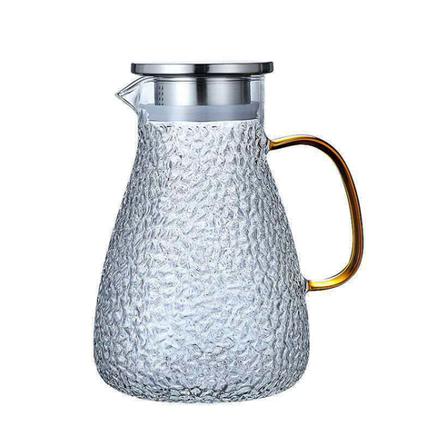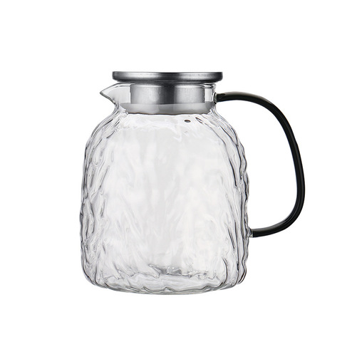 Nhà Máy Outlet Trong Suốt Chịu Mài Mòn 1800Ml Cao Thủy Tinh Borosilicate Nước Lạnh Ấm Đun Nước Búa Ấm Trà Với Nắp Thép Không Gỉ
