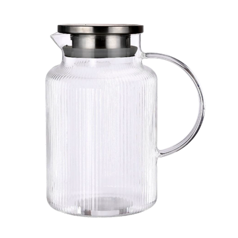Pichet à thé en verre borosilicate durable à rayures rondes de 60.87oz avec couvercle en acier inoxydable
